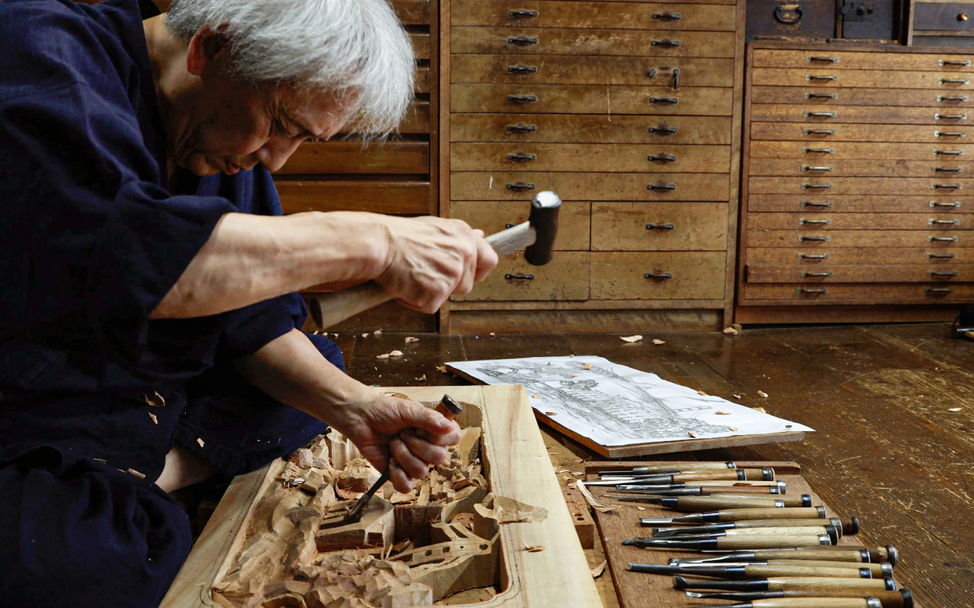 Inami woodcarving is defined by its creation from a single block of wood, an art of subtraction that reveals form